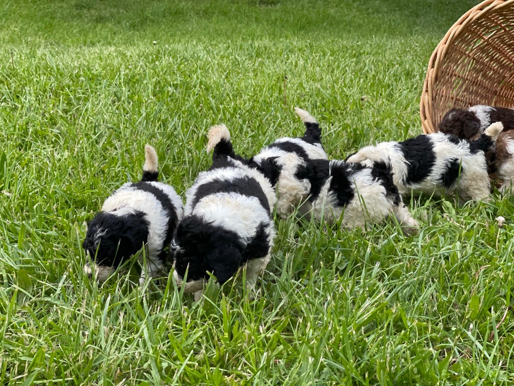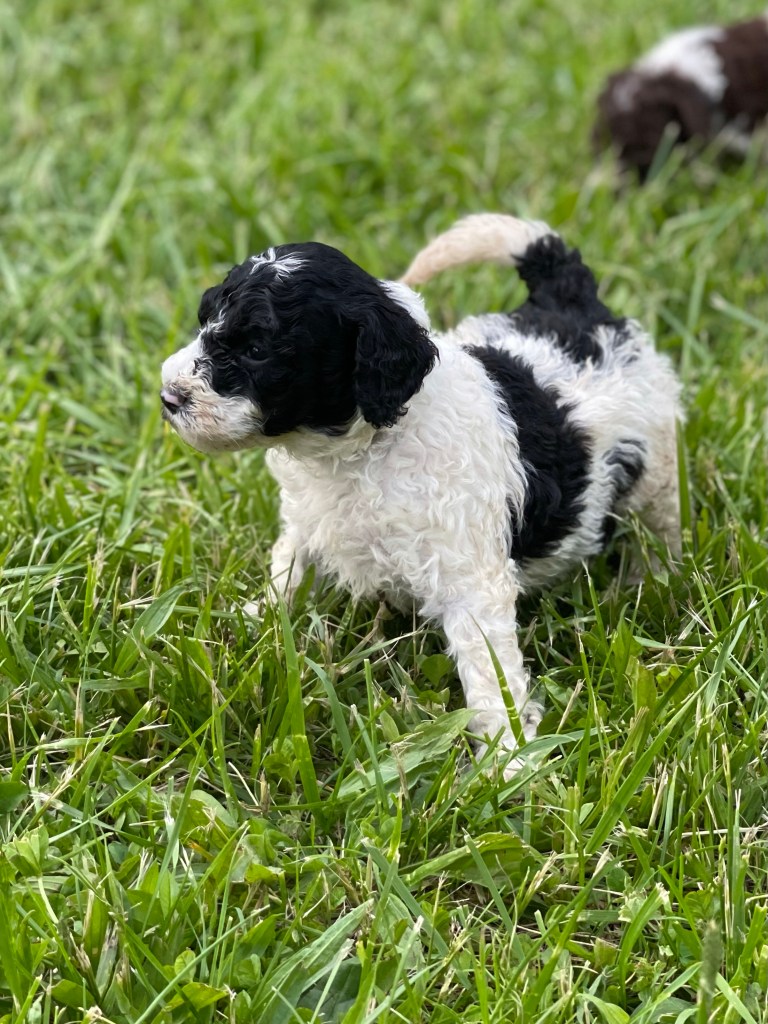 Make every day a “Parti”! Our parti-colored puppies are all AKC registered and are fully hypoallergenic, non-shedding poodles.