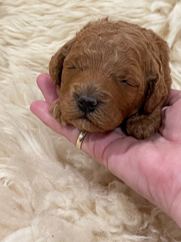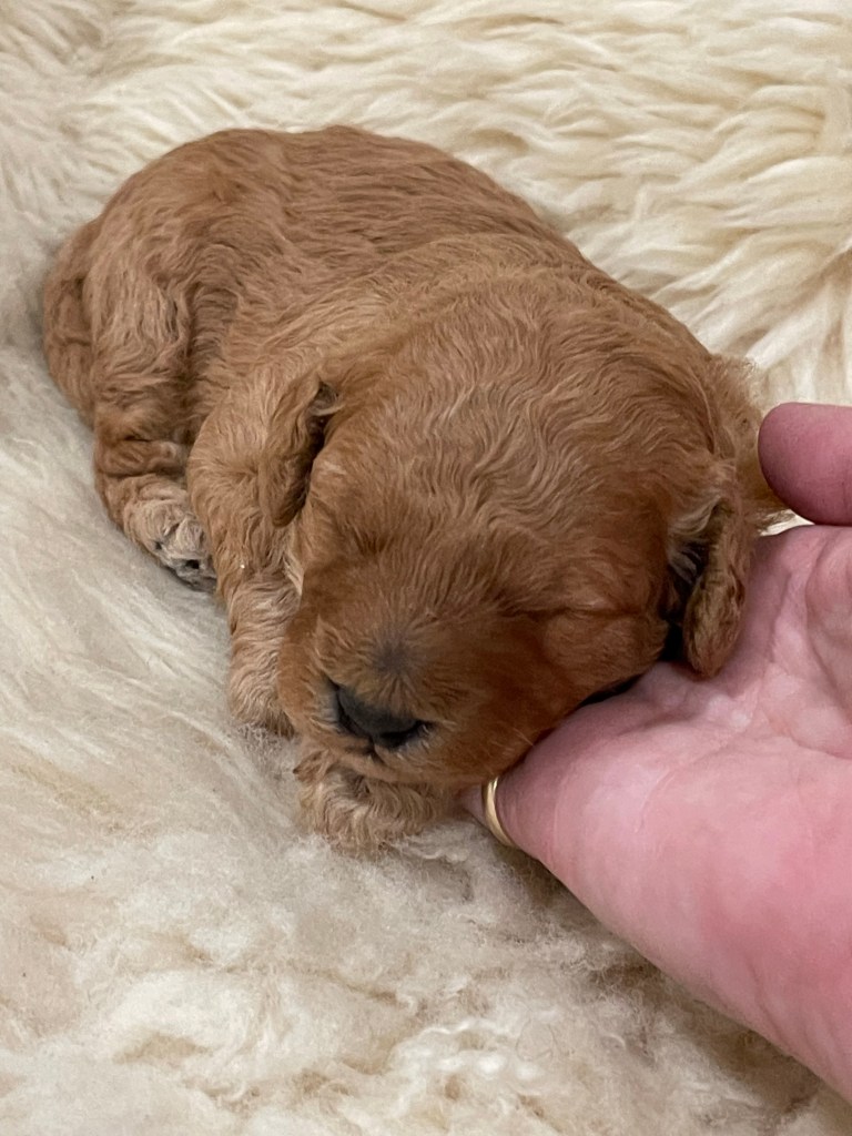 Cozy is my special shadow. So loving and loyal, she is highly intuitive and sensitive to my needs and moods. She also follows her mother in having the best sniffer! She even has a sister who has been trained as a trufflehunter. Cozy’s puppies will be excellent companions and will grow to weigh around 14-16lbs.