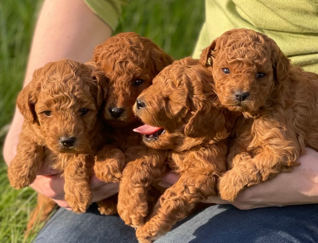 Our spring 2025 red AKC miniature puppies will bring a delightful combination of loving attention and curious playfulness into your life. See individual pictures on our “meet the puppies” page and contact me to reserve a precious puppy now.