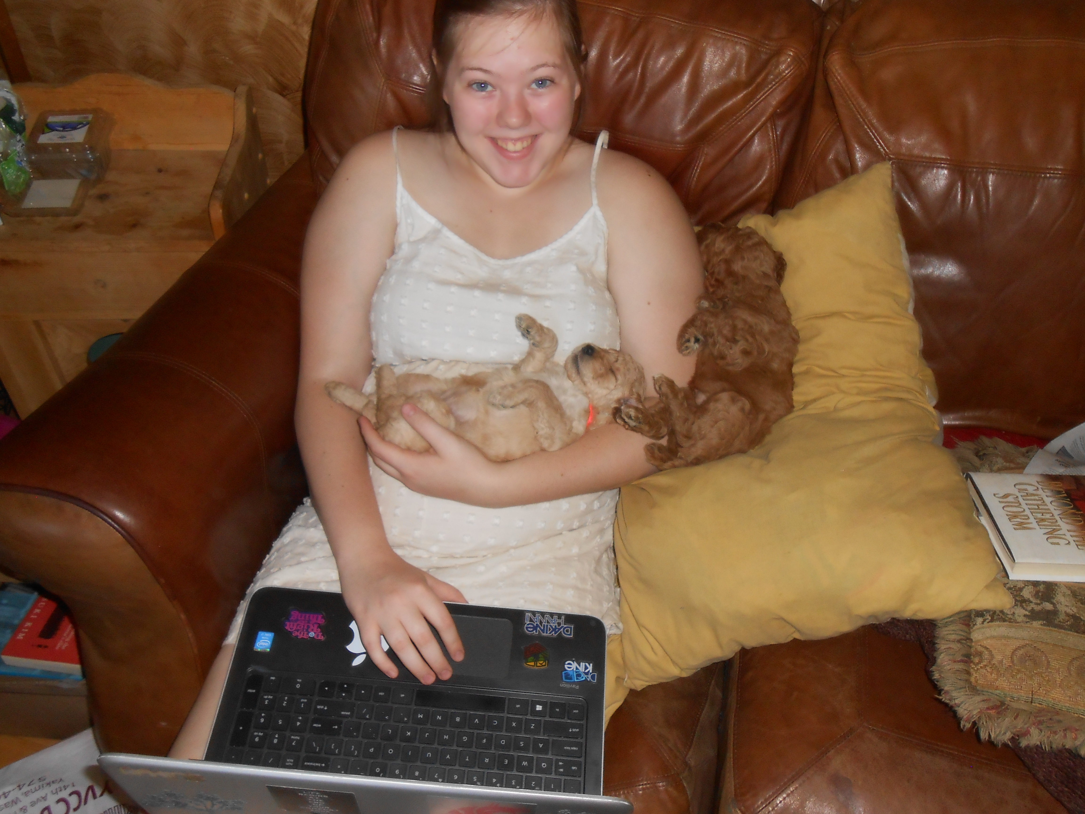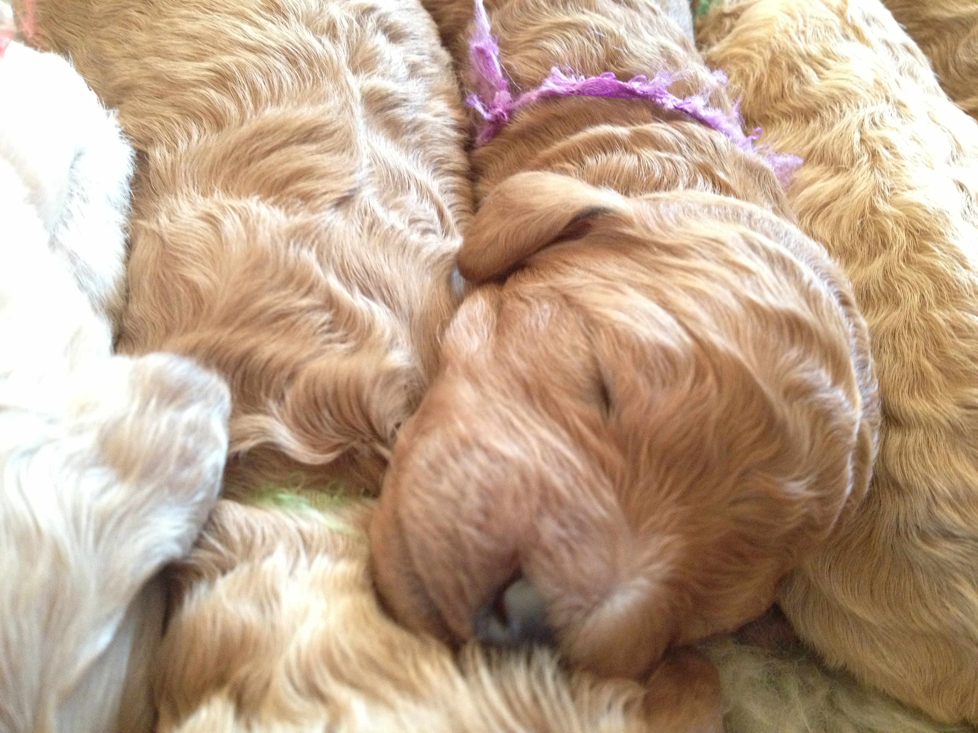 such a heap of contented puppies!2014 Litter including Reds, Apricots, and Creams.