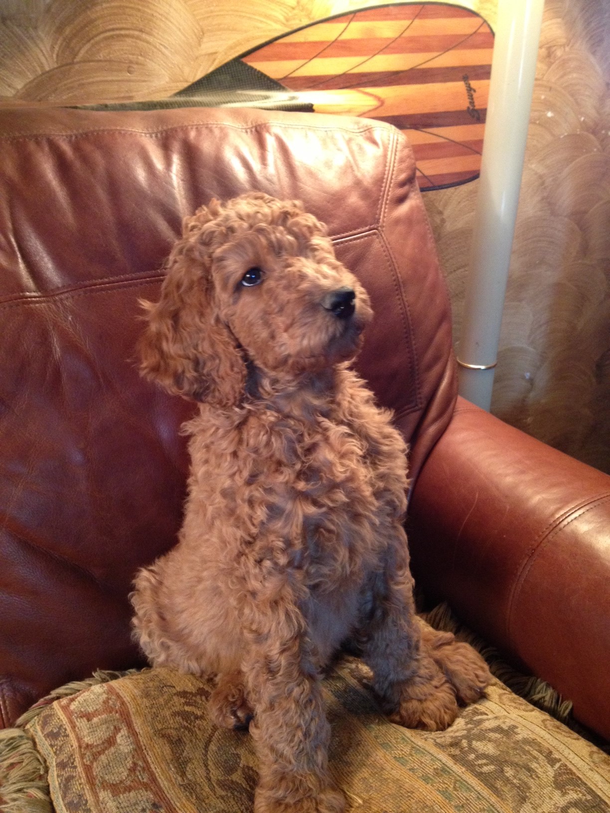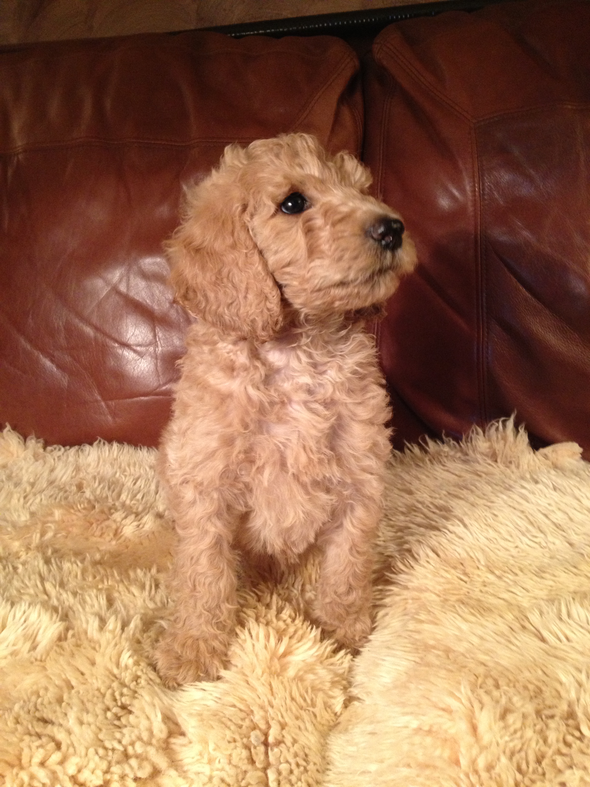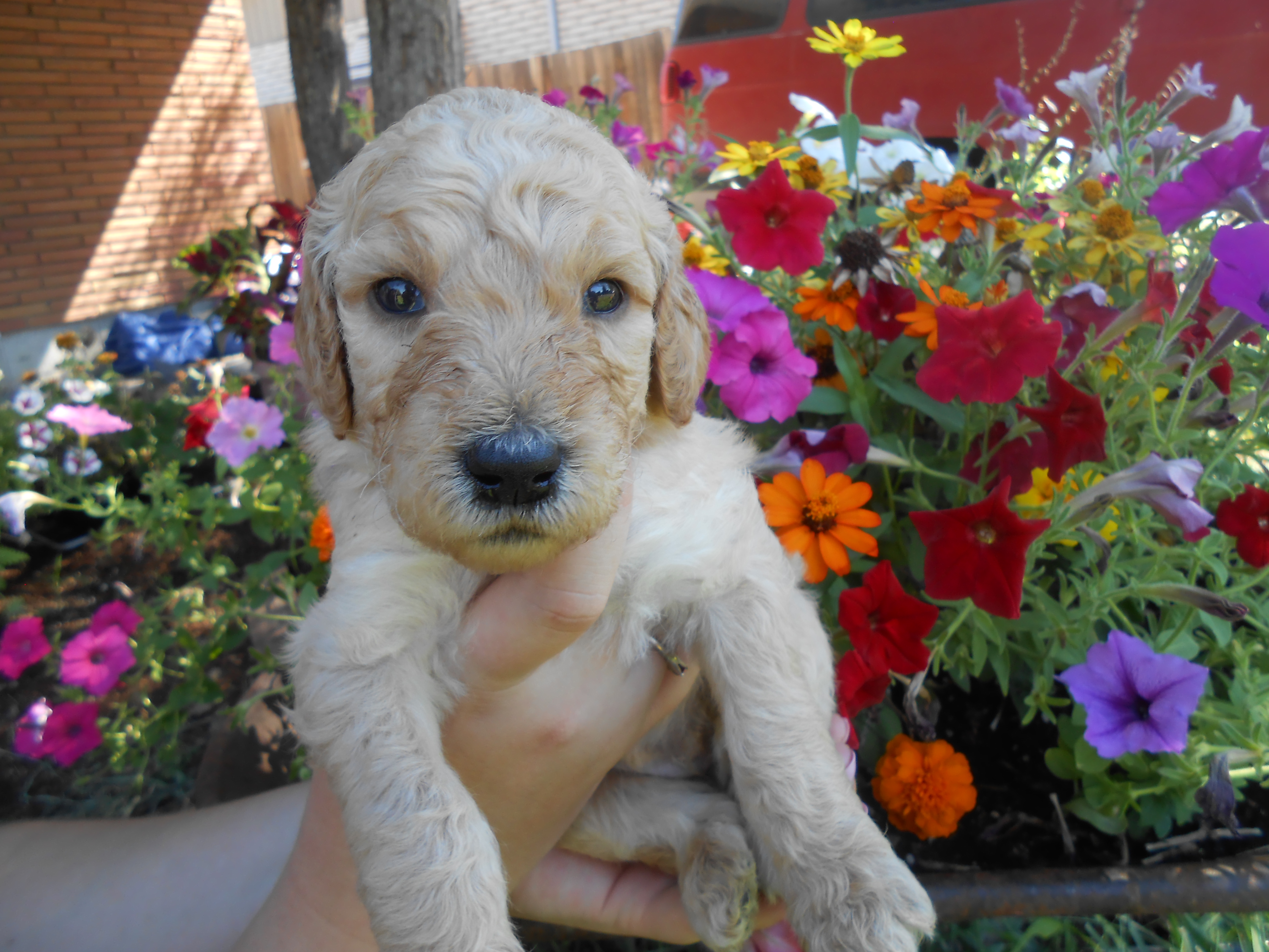 Red Male, blue collar boy, this big and relaxed male is an all around favorite, happy-go-lucky, friendly and good looking, ADOPTED, congratulations Nicole.Mother, our dog Pippa, is cream in color, sire, Kingston, from Imperial Purity, is a red poodle. Puppies range in color: red/apricot/cream, a beautiful spectrum of color, with affectionate, loving personalities.